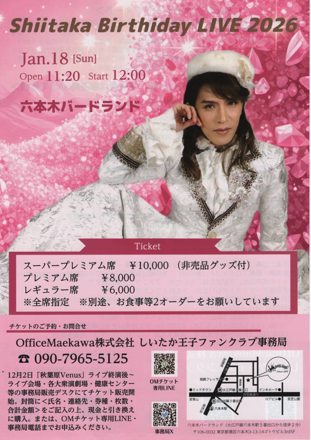 SP席¥10,000 P席¥8,000 R席¥6,000 (別途2order)
