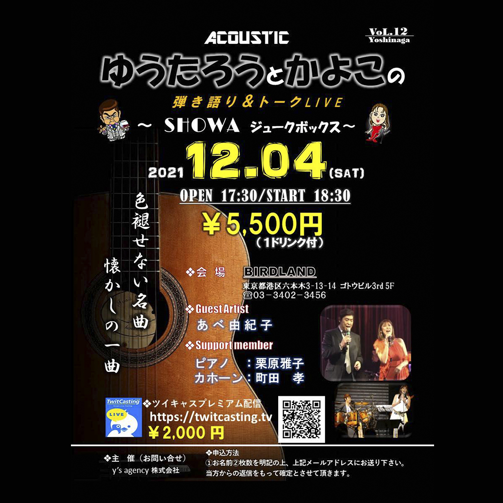 ¥5,000(お食事+ソフトドリンク付き) ※公演4日前以降のご予約は¥3,800(2drink付きで食事は無しとなります)