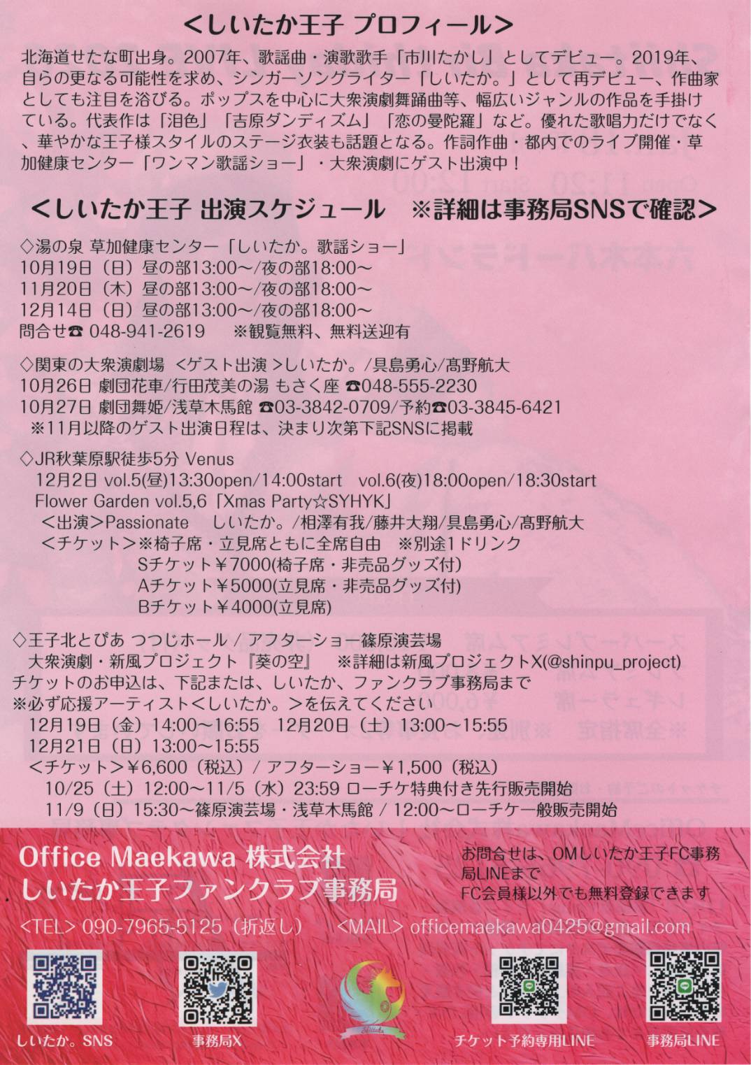 SP席¥10,000 P席¥8,000 R席¥6,000 (別途2order)