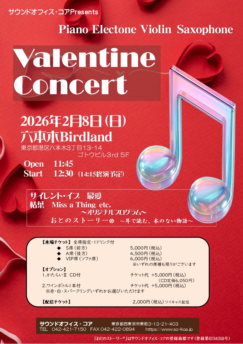 ご来場チケットはサウンドオフィスコアへお問い合わせください。